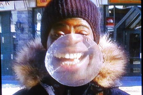 Most viewers certainly come away with a fairly good map of Offeh’s dental records from his work; he takes Charlie Chaplin’s order to smile seriously, but one also feels a sense of immersion amid an occasional unseriousness. The exhibition is deeply meditative. Staring into the flickering televisions with lengthy videos, it becomes hard to leave, not wanting to turn away from the perplexing movements as the camera is fixed on stationary, shifting subjects. Offeh’s photos had a similar sense of moving strain in one particular series of pictures depicting his mouth holding rocks which considers mineral extraction in Africa. Through the first room Offeh evokes its title in trying a little harder, both from the standpoint of a young artist and in the aims he sets in each piece. From trying to reframe Black bodies in observation rather than in labour to mineral extraction to drag, the room reflects its artist’s journey through to the second where it could be sweet. The exhibition succeeds in dividing Offeh’s work into difficulty and sweetness well, creating a pleasant sense of release.