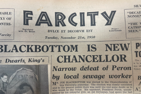Resident Varsity archivist Vialli McComb revives Varsity’s supplementary paper Farcity and explores how the editors poked fun at the dramatic issues facing Cantabs.