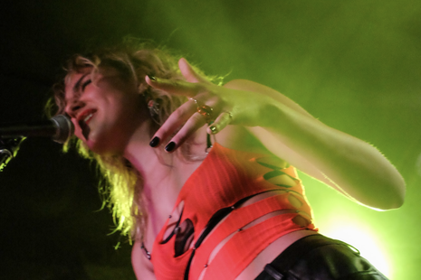 As for her influences, it seems she’s drawn to women’s voices and perspectives: “At the moment, I have a whole playlist that’s just bands with female singers like Metric, Biig Piig, Angel Olsen.” I ask about her performance at a Taylor Swift Appreciation Society event before the Easter holidays, and she tells me that, although she isn’t a diehard fan of America’s sweetheart, she admires the singer for her soul-bearing lyrics.