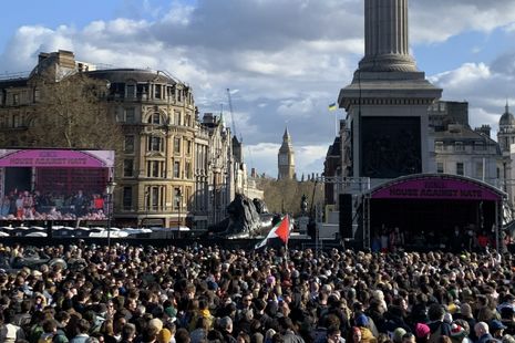 Boasting an eye-wateringly strong panel of endorsements from Sir Lenny Henry to Fontaines D.C., Paul Weller to Paloma Faith, Together Alliance seeks to represent a broad left of ‘trade unionists and environmentalists, community activists and faith leaders, musicians, athletes, entertainers and elected representatives’ united against any and all forms of far-right inculcated division and delinquency. With my bright-yellow suitcase still unpacked from my return home the day prior, I joined Together’s grey-skied protesting throngs on 28th March, which, though culminating in a House Against Hate musical takeover in Trafalgar Square, was a sonically charged event from the outset.