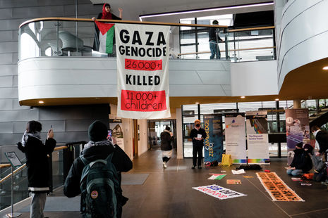 A coalition of climate justice and Palestinian solidarity groups staged a sit-in at the University today, attacking Cambridge’s links to companies which are “involved in producing weapons” used by Israel and “deeply complicit in the climate and ecological crisis”.