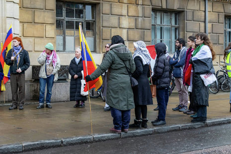 Some began handing out flyers promoting a sit-in organised by Cambridge for Palestine to students. One protester told Varsity that they sought to send a clear message to the University regarding arms divestment, before the University Council hold a vote on the issue next month.