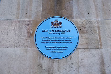 Outside the pub, you will see a blue plaque memorialising the 28th of February 1953 – on this day, Watson and Crick came to The Eagle to announce the fact that they had finally cracked the double helix structure and discovered “the secret of life”.