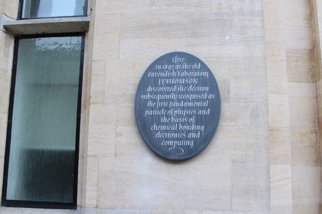 Further along Free School Lane, you will see a plaque praising J. J. Thomson’s famous 1897 discovery of the electron (a fundamental particle of the atom). Thomson was appointed as the Cavendish Professor of Physics in 1884, and won the 1906 Nobel Prize in Physics for his work on the electrical conductivity of gases. If you have spent any time in West Cambridge, you have likely walked along JJ Thomson Avenue, which is also named after him.