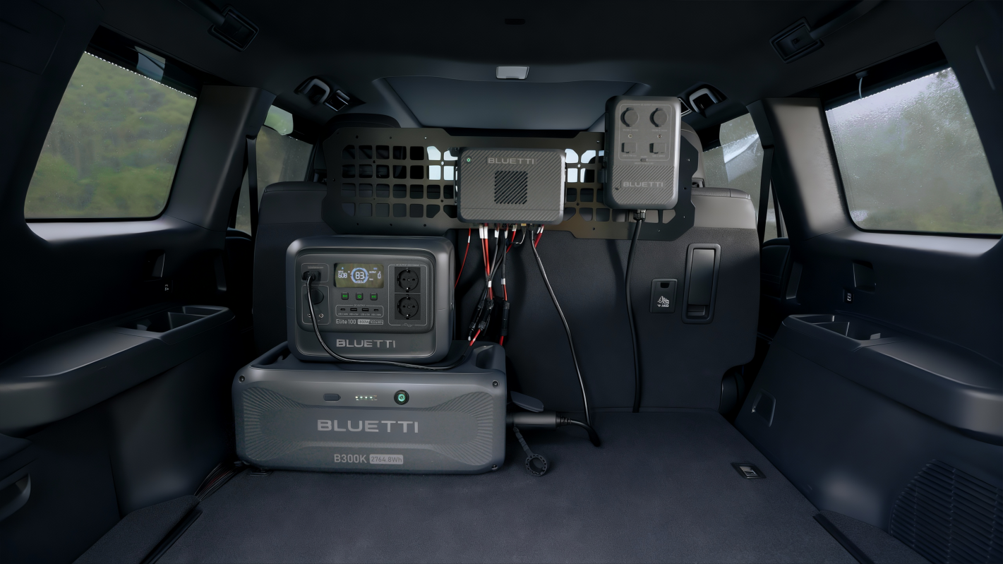 - While Driving: The unit intelligently manages power from the alternator and roof-mounted solar panels to charge auxiliary BLUETTI batteries and power onboard loads simultaneously.