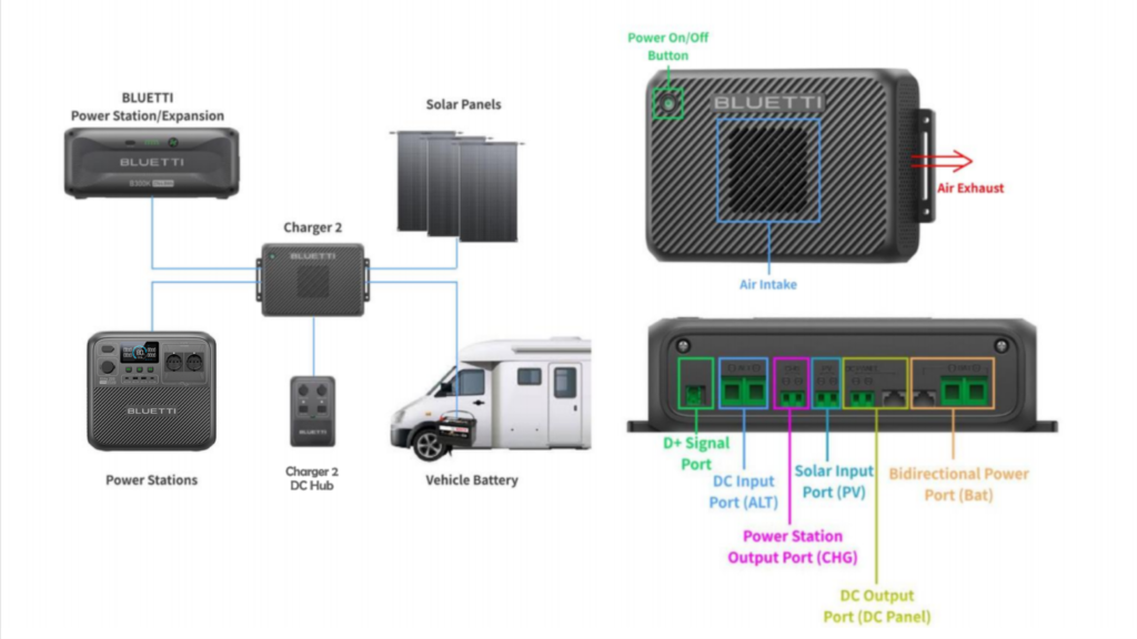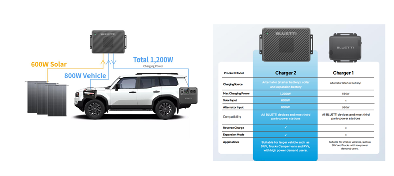 As the newest addition to the BLUETTI Ecosystem Series, the Charger 2 builds on the legacy of the Charger 1 Alternator Charger. It retains the widely praised 95% compatibility with third-partyportable power stations on the market, along with the same simplified installation.