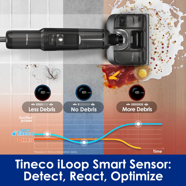 Yes—its iLoop smart sensor adjusts suction and water flow for both dry debris (cereal, toast crumbs) and sticky messes (sauce, syrup). The 450x/min fresh-water recycling (MHCBS technology) prevents smearing, so you don’t have to re-clean splatters like with a traditional mop. It even handles small, dry debris better than some wet-dry rivals that push crumbs around.