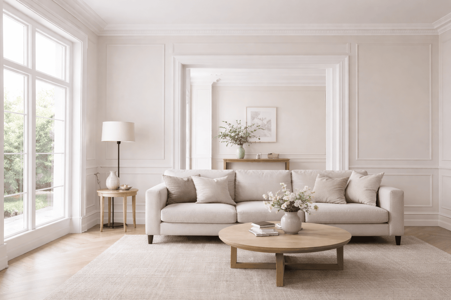 From there, the living room benefits most from proportionate skirting- particularly in open-plan spaces where the wall is exposed over a large area. And for homeowners who’ve noticed that flat walls feel abrupt or undifferentiated, panel moulding offers a way to introduce the rhythm and shadow lines that bare surfaces lack, without touching the structure of the room at all.