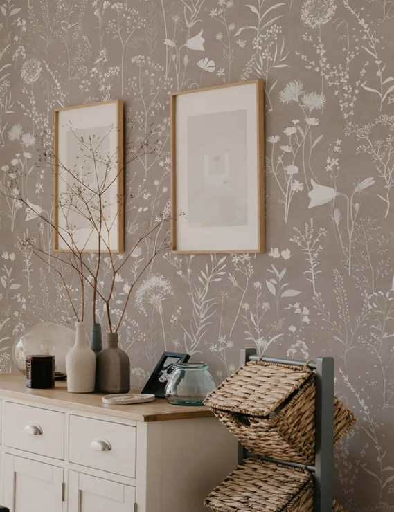 Wildflower meadows feel airy and welcoming. They work especially well in narrow hallways where heavy prints can feel close. Look for scattered stems, soft spacing, and natural tones.