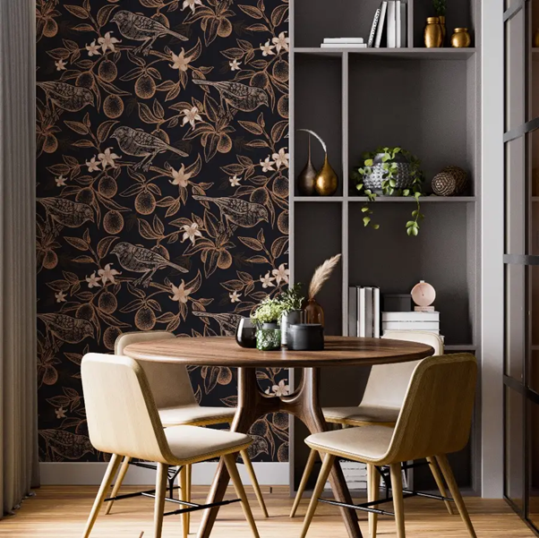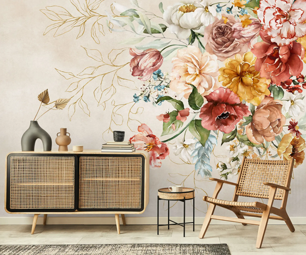 Art Deco florals feel structured and glamorous. You often get symmetry, repeated fans, and stylised petals. Metallic notes can look great in formal hallways, if glare stays controlled.
