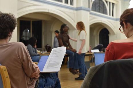 Senan describes the moment “late in the library” when he decided to write this play, struck by inspiration from two terms spent “deeply entrenched” in classics and theatre. From the very beginning: “it has been a collaborative process,” he opens, finalising the script over the summer alongside director, Louisa Hailey, and assistant director, Thomas Gladstone. He notes how indispensable this support was: “trying to do the editing process alone is so difficult … killing your darlings is such a real process”. I am struck by this play’s collective effort, something which Senan made a very deliberative move to facilitate when he started writing, revealing his intentional decision to include little to no stage directions in the script. In his mind, this allows for the play to develop beyond a singular vision. Speaking later with Louisa only reinforced that point for me; as she put it, this “hasn’t been anyone’s one project”.